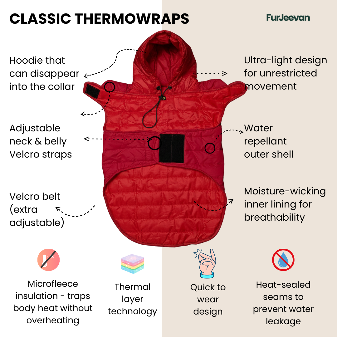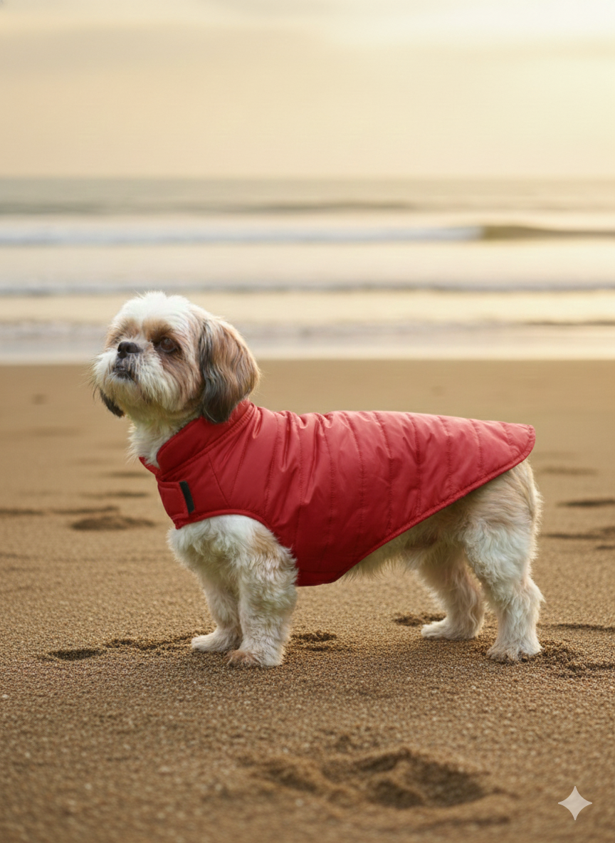 High-performance all-weather raincoat designed to keep pets warm, dry, and comfortable during rain or winter walks. Combines thermal insulation with water-repellent protection.