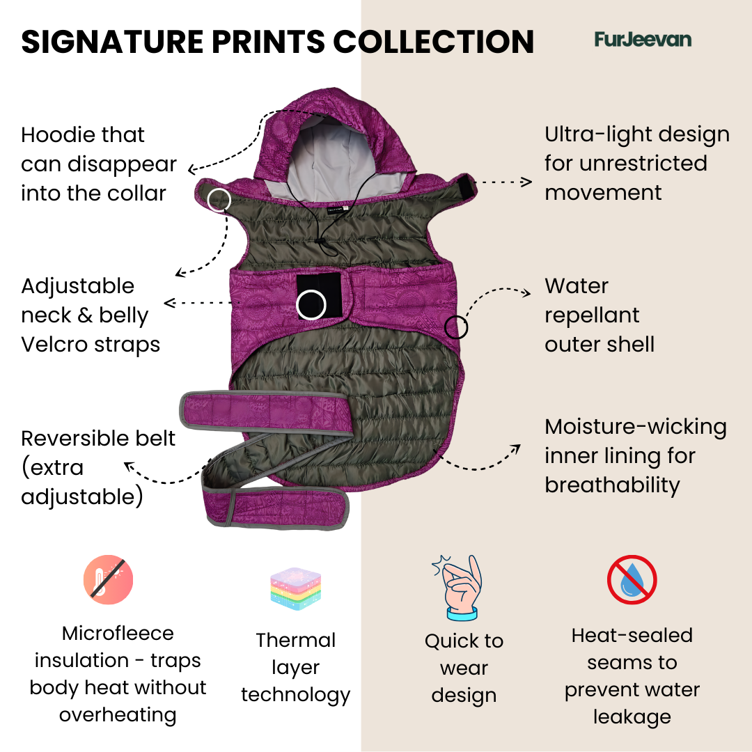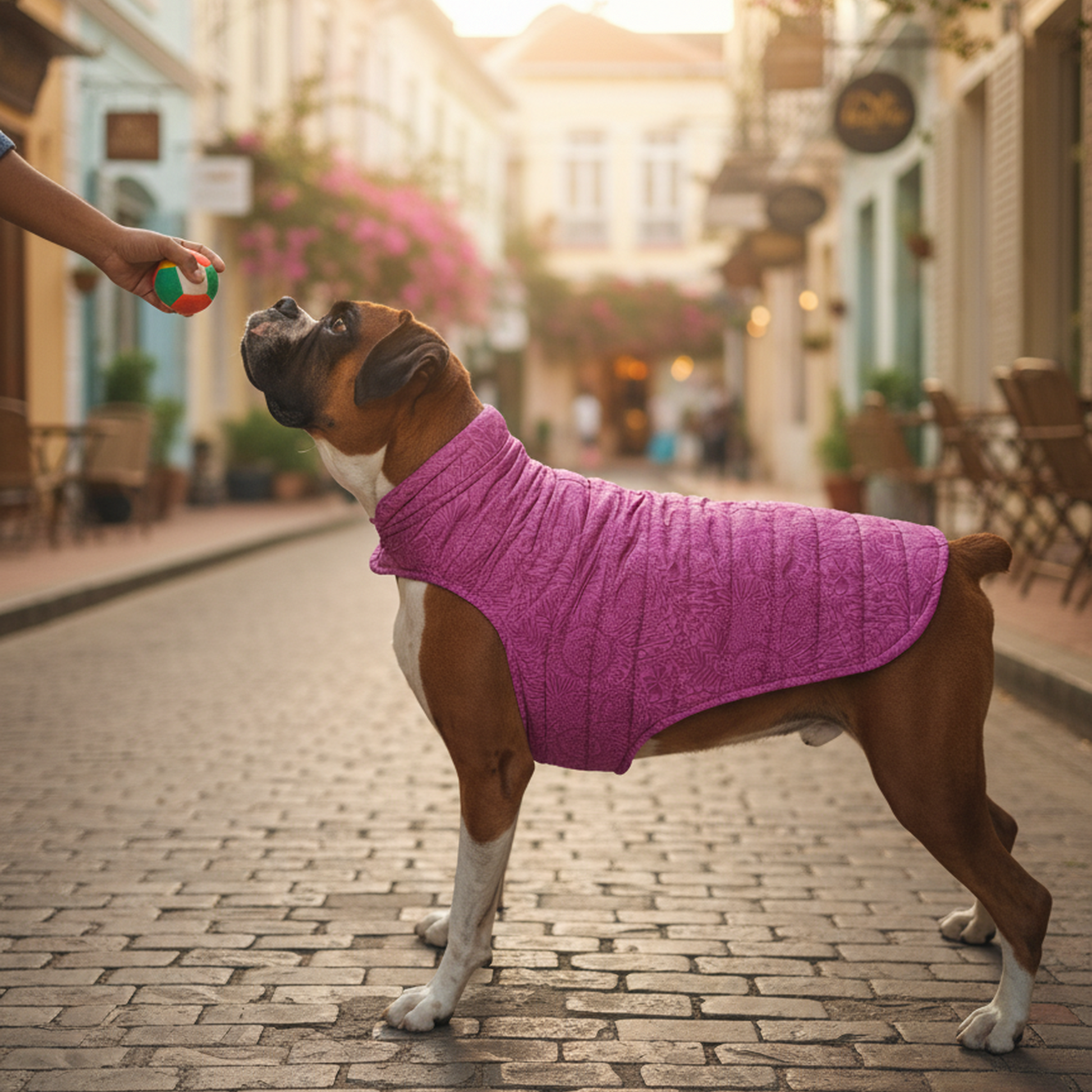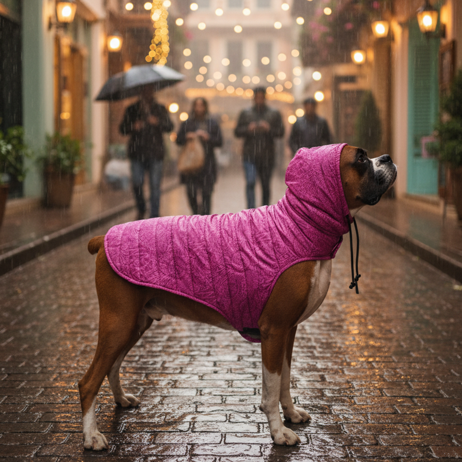 High-performance all-weather raincoat designed to keep pets warm, dry, and comfortable during rain or winter walks. Combines thermal insulation with water-repellent protection.